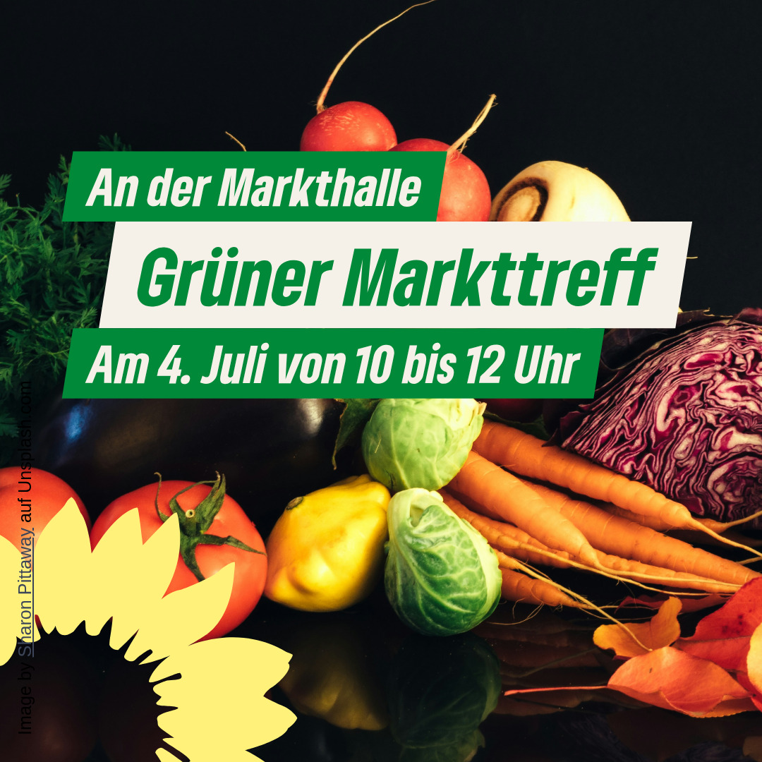 Wir treffen uns jeden ersten Samstag im Monat zum Grünen Markttreff an der Markthalle.
